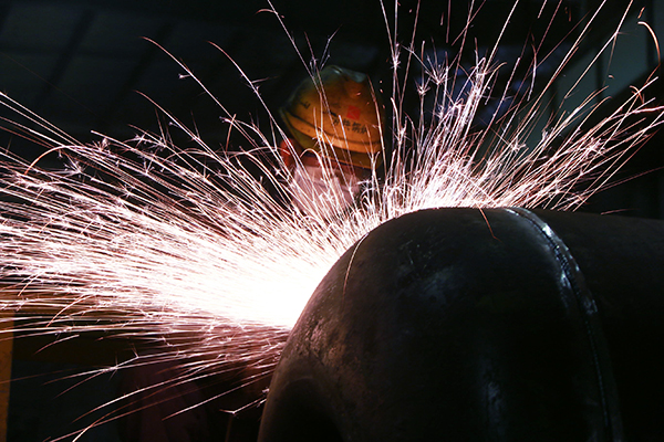 钻在炉筒内的王工手持焊枪轻轻一点,眼前“刺”地一声飞起一片璀璨的焊花,弧光耀眼。眨眼间,焊点变红,焊条熔化,两个断面慢慢被“缝合”起来,青蓝色的焊面上焊点均匀而平滑。